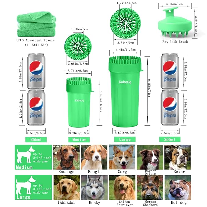 - 【 PORTABLE AND LIGHTWEIGHT PAW CLEANER】You can keep it on the your front or back door, and can take it convienent as you come in. The size of paw cleaner for large dogs: (9.45*4.4*4.4IN) . It is easy to carry. the large paw washer is pet's good partner when walking and hiking. Hanging around your pet's neck is also a good choice.
