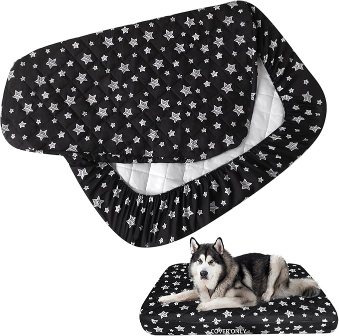 Dog Bed Covers Replacement Washable Pet Hair Easy to Remove, Waterproof Dog Bed Covers Noiseless Quilted, Pet Bed Cover Lovely Black Star Print, Puppy Bed Cover 44x54 Inches, for Dog/Cat, Cover Only