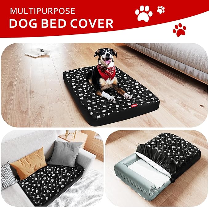 - Lovely Print with Super Soft Quilted Fabric: The dog bed cover made of black with star print fabric, different from most solid color dog bed covers on the market. In addition, premium microfiber quilted surface provides a soft tactile experience for your pet.