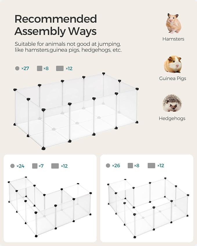 - [Customizable and Expandable] Arrange this flexible pen in an L-shape to fit your corner space or stack them into a 2-story pet house within the limit of the included parts. Please see the recommended assembly methods below for further details