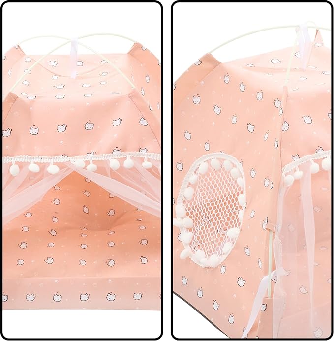 - Net yarn can annoying creatures and wind, good air permeability, sleep is not stuffy. The small tent space will bring security to most pets, such as dogs, cats,