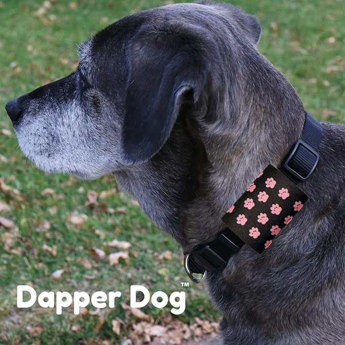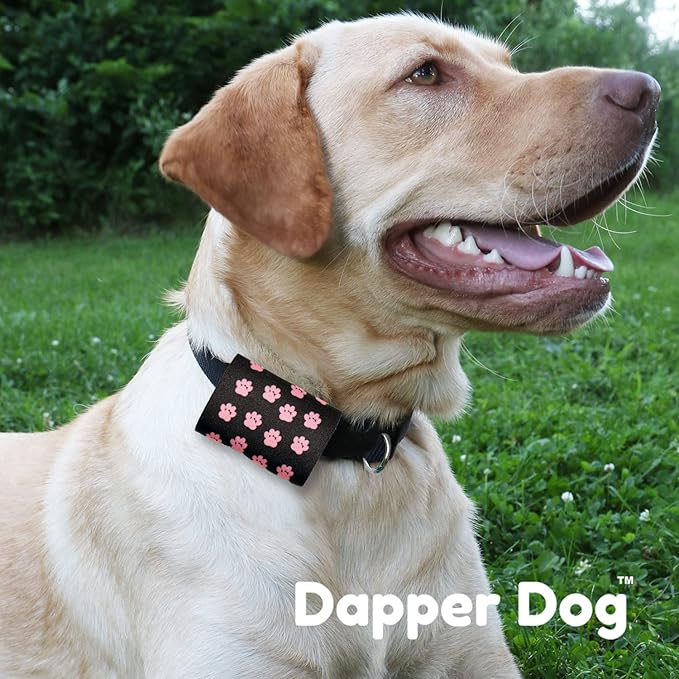 Dapper Dog Pet Tag Silencer and AirTag Holder (Black with Small Pink Paws)