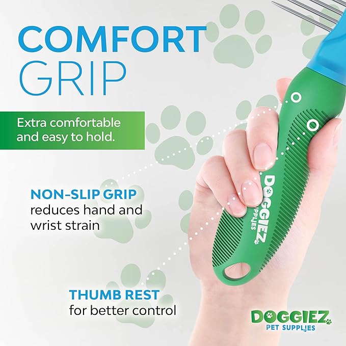 - ANTI SLIP GRIP - Professional groomers and vets recommend our ergonomic handle because of its anti slip TPR rubber grip. You can safely and comfortably use this comb for extended daily grooming sessions without wrist pain or achy hands. Works wet or dry