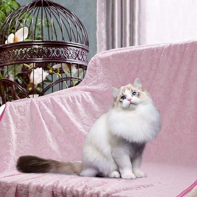 - PREMIUM MATERIAL FOR PETS ONLY: Super Soft & Warm comfy fleece for your pets, exclusive cute paw prints design on the top, lovely solid pink color on the back, no fear of peeing, bitting, chewing and tearing. Your dog will love it!