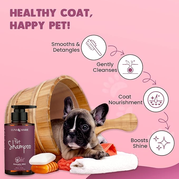 - 【MOISTURISES AND SOOTHES】: Give your furry friend the pampering they deserve with our nourishing Pet Shampoos! LunaMarie Pet Shampoos are designed to remove dirt, grime, and odors from your pet's coat, leaving them smelling fresh and clean. Our soothing bath shampoos are specially formulated to moisturize and soothe your pet's skin while effectively cleaning their coat.