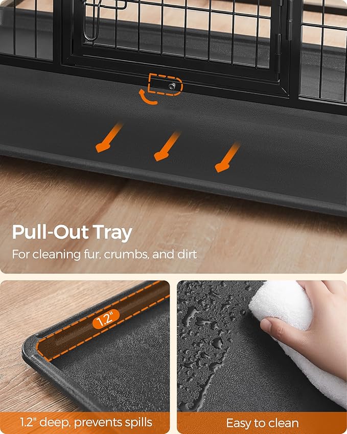 - [Easy to Clean] This dog cage comes with a pull-out tray so you can take it out for cleaning?”easily keeping your fur friend?™s place clean (it?™ll thank you for that!)