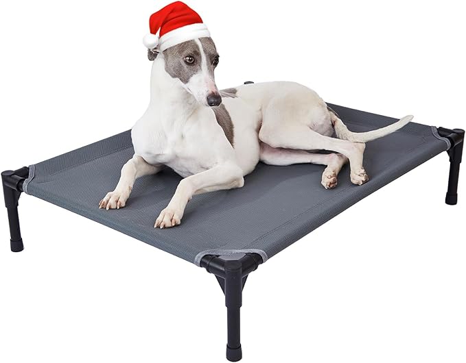 pettycare Elevated Outdoor Dog Bed - Dog Cots beds for Medium Dogs, Heavy Duty Raised Dog Bed Waterproof, Cooling Elevated Dog Bed with Washable Teslin Mesh, Durable, Non Slip, 32 Inches, Grey