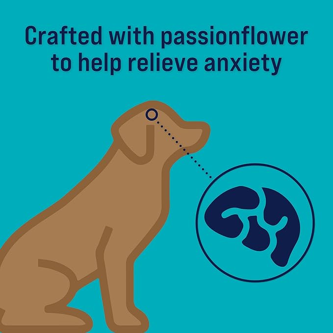 - Anxiety Relief: These calming dog treats help relieve your dog’s stress or separation anxiety, made with naturally calming passionflower and valerian root to aid stress relief