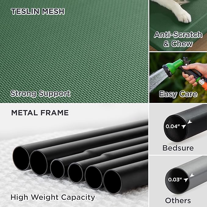 - Strong & Durable: Heavy-duty Teslin mesh holds up against scratching and chewing, providing excellent support and even pressure distribution to reduce joint and muscle pain. The strength-tested lightweight metal frame supports dogs up to 75 lbs.