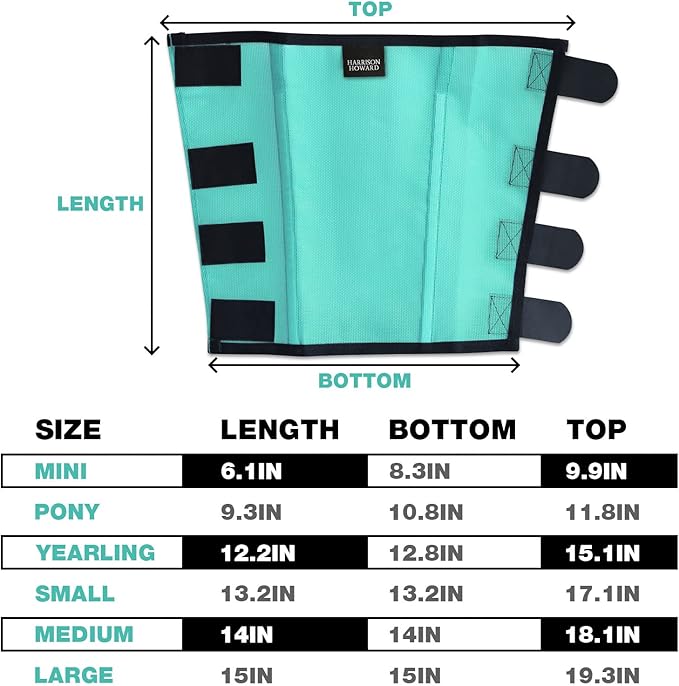 Harrison Howard Loose Fitting Fly Boots UV-Protective Extra Tough Mesh Ventilated Four Fasteners Stay-on Design Protect Horse Legs & Stomp-Reducing Set of 4 Mint Pony