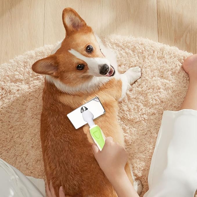 - 【ENJOY MASSAGE】- This dog slicker combs with stainless steel, and softer pins. This pet combs glides through thick coats without tugging or pulling hair, or scratching their skin, offering a relaxing massage. Our pet grooming pin combs reduces young & old dogs & cats' shedding. No worrying about unsightly hair or fur all over your house, beds, or car. Reducing coat issues with regular combsing of your furry companion will reduce the chance of reactions in your home.
