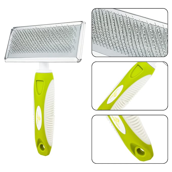 - 【PRO GROOMING COMBS】- Our Slicker combs is good to get in touch with the root of your pet's hair. Remove underlayer fluff to prevent tangles. The dog slicker combs has a soft needle, and buffer force, making the combs resilient, and effectively avoiding injury to the skin. Light weight save the time and energy of grooming and combsing.Perfect use for Fluff, detangling, and style with one tool. Also, it is good to use daily gently combsing away loose hair, undercoat, mats, and tangles.