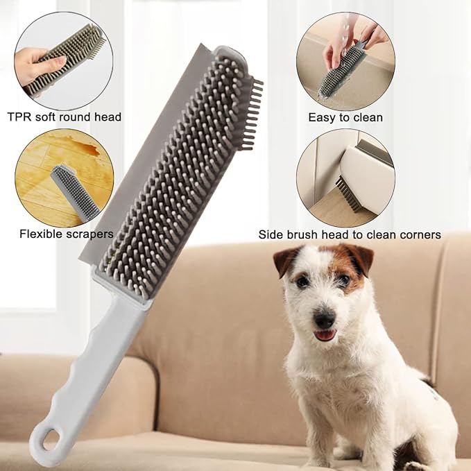 Pet Hair Removal Brush, Pet Hair Remover, 3 in 1 Mirror Cleaning Brush with Scratch Free Rubber Bristles and Handle, Ideal for Cars, Seats, Sofa, Carpets, yard, Removes Hair from Surfaces