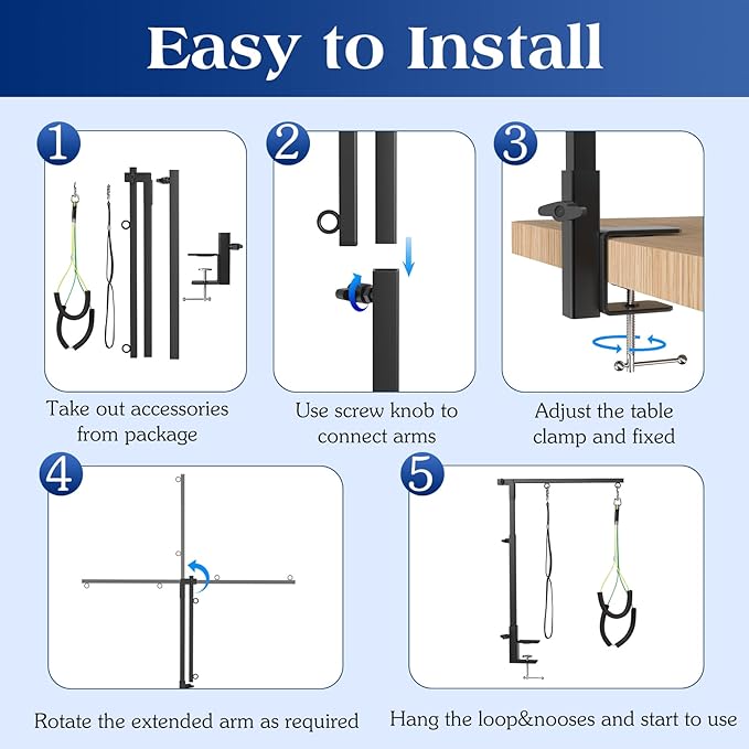 - Easy to Install: The installation of dog grooming stand is very simple, even a non-professional pet groomer can easily finish it without tools. Note: Table not included.