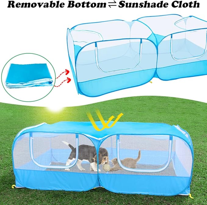 - 【Upgraded Pet Playpen】Removable design at the bottom,suitable for indoor and outdoor use.Removable Bottom put on top of the tent also be used to shade the sun to prevent heat stroke in pets.It is ideal for dogs, cats, isolating an injured pet, or introducing a new pet.