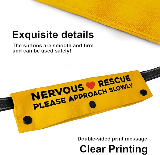 - Theme: Yellow Dogs Leash Sleeve with same saying: "Nervous Rescue Please Approach Slowly", Funny dog Accessories for your lovely dog cat puppy