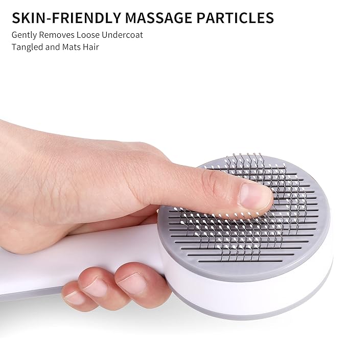 Self Cleaning Slicker Brush for Cat or Dog, Pet Grooming Brush for Long or Short Hair, Dog comb For One Button Gently Removes Loose Undercoat and Shedding Hair (Gray)