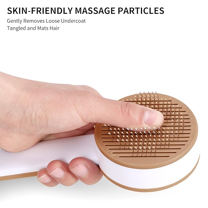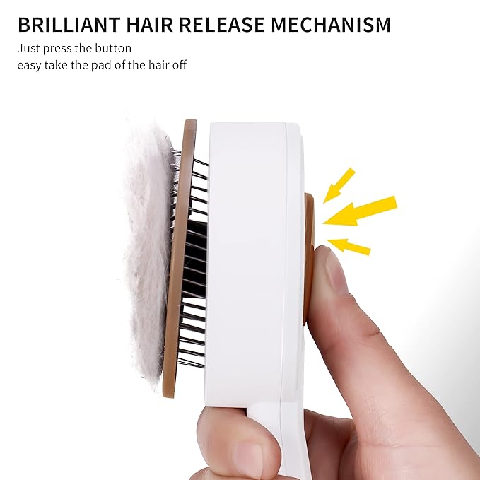 Self Cleaning Slicker Brush for Cat or Dog, Pet Grooming Brush for Long or Short Hair, Dog comb For One Button Gently Removes Loose Undercoat and Shedding Hair (Coffee)