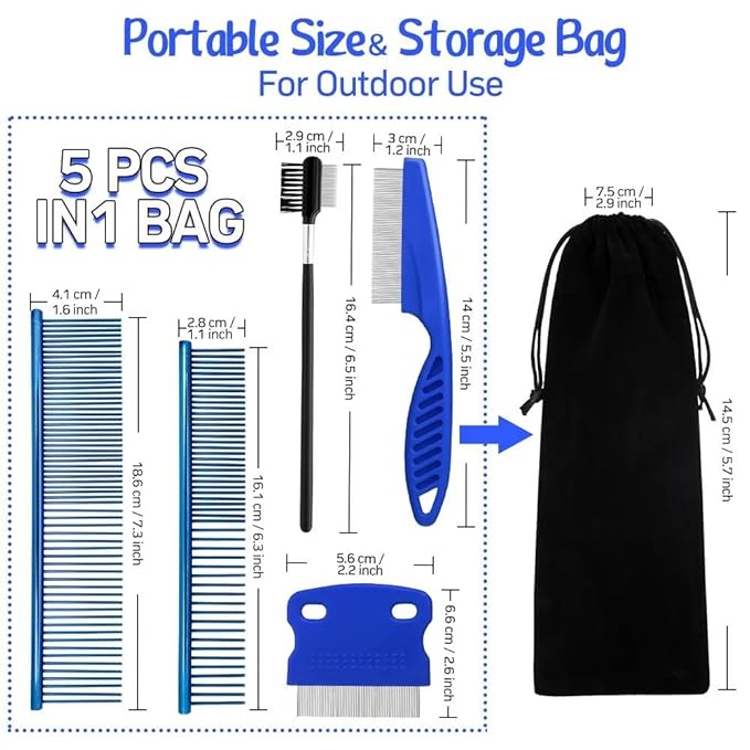 - Multifunctional & Easy to Use - Short teeth lice comb for short hair and pet head top or belly hair. Long teeth lice comb for long hair back cleaning , stainless steel needle fine tooth comb with grip can flexible use on any part of pet body, 2 in 1 metal comb for large pet hair cleaning. One set of our combs is enough for your pet grooming.