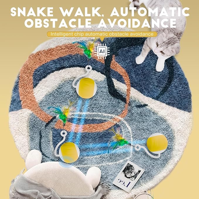 - Indoor Cat Toys-2 Speed Modes : Cat toy ball two speed modes switch at will. High speed is suitable for active adult cats. Low speed is suitable for kittens and old cats, and timid cats will not be afraid. Irregular movement trajectory scurrying like a mouse, arouse the interest of cats, stimulate the predatory nature of cats, so that cats are not bored all day.