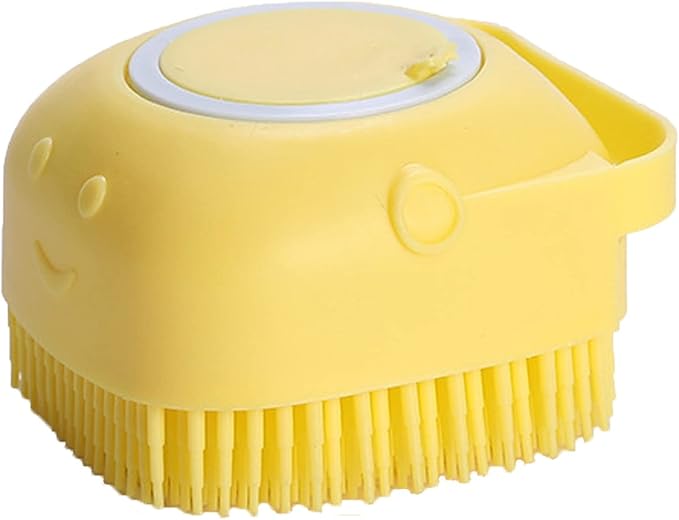 Pet Bath Brush Scrubber,Silicone Bath Brush Filling Liquid,Pet Massage Brush Bath Shampoo Brush,Hair Fur Grooming Cleaning For Short Long Haired Dogs And Cats (Yellow)