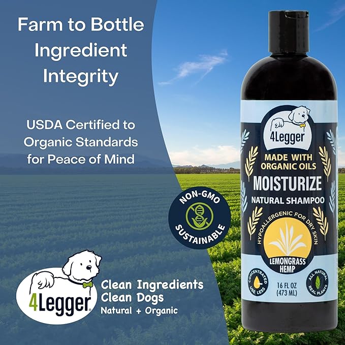 - GREAT FOR ITCH RELIEF AND SENSITIVE SKIN: The perfect hemp oil pet shampoo, 4Legger dog shampoo contains hemp oil, which helps tone and maintain your dog's natural skin moisture. Our shampoo also contains Aloe Vera, which acts as a dog conditioner to make hair and fur look shinier, glossier, and healthier. Lemongrass acts as a dog skin soother. No artificial thickeners, which means your dog will have a naturally soft and shiny coat.