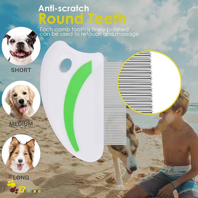 - ROUNDED EDGES: Every comb tooth is finely polished, won’t scratch pets’ skin, easily removing lice, flea, mess, mucus, stain etc. Ideal for combing soft fur nearby eyes, ears and fine hair of the legs. Let you and your pet enjoy this fun time together