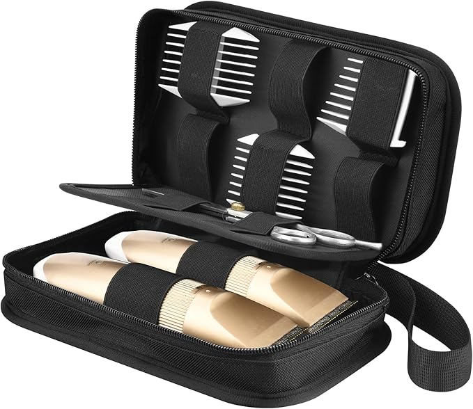 - Large Capacity: 4-Parts organizer dividers fits for kinds of trimmer accessories storage and keep accessories are in order. The case can hold up to 2 pcs dog trimmer shaver machine, 6 pcs limit guide guards, steel comb, scissor, and built-in mesh bag provides storage the small accessories, such as cleaning brush, adapter, small blade, bottle, etc.
