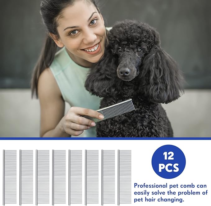Lallisa 12 Pcs Stainless Steel Dog & Cat Comb, Metal Grooming Tool for Removing Knots, Long and Short Haired Pets Including Dogs, Cats & Others, 7.48 Inch
