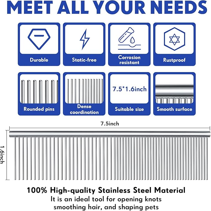- Solid and Reliable: made of quality stainless steel, our dog grooming combs metal are sturdy and solid, safe and friendly, with a smooth surface, not easy to fade, rust, break or corrode, dependable to serve your pet for a long time
