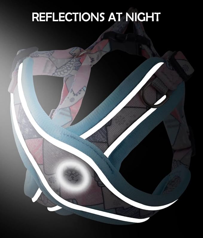 - High Visibility : The reflective harness is designed with high-visibility materials that help keep your dog visible in low-light conditions, making is safer for both you and your dog during nighttime walks.