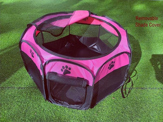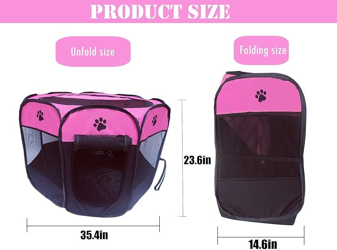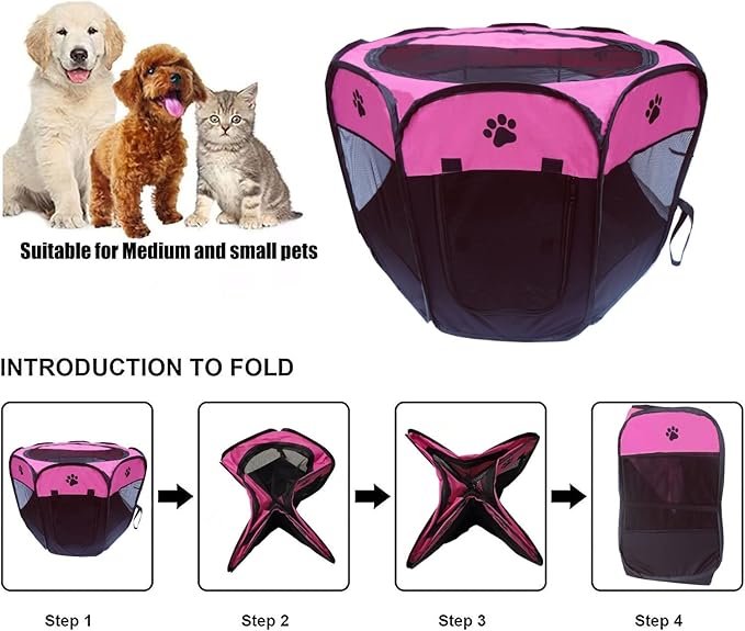 Portable Pet Playpen for Small Cat Dog Puppy Rabbit,Cat Kitten Playpen Indoor Outdoor with Carrying Case,Waterproof Bottom and Removable Zipper Top (M(35.4" x35.4" x23.6"), Rose)