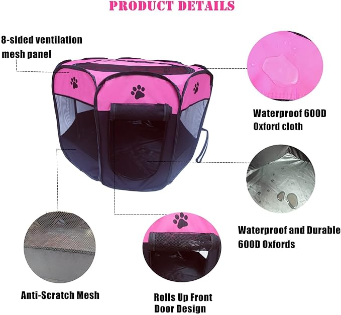 - 3.Premium construction: constructed from thick waterproof 600 D polyester oxford fabric,breathable mesh window shades, and reinforced with iron wiring. Spacious 8-panel design with reinforced seams and corners. Zippered door provides easy in/out access for your pet. Keep your pet safely inside everywhere.