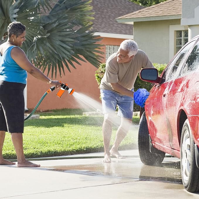 - 8 Spray Patterns: The dog wash foam sprayer has 8 types of nozzles, rotate click spray selector for different settings ( rinse, stream, flat, center, jet, shower, mist, and cone ), whether you need wash your car, or the gentle shower to wash your pet, the 8 patterns have you all covered. which can bathe your pets, water lawns, plants, gardens, wash your car, spray nozzle for garden hose fit your different needs.