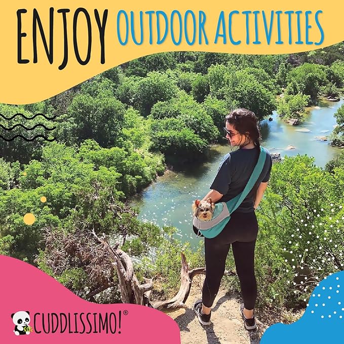 - 🐶 PERFECT FOR MEDIUM PETS - Cuddlissimo! pet sling carrier is designed for medium sized dogs or cats, up to 12 pounds in weight. This dog sling has a padded bottom, and the neck opening is fully adjustable.