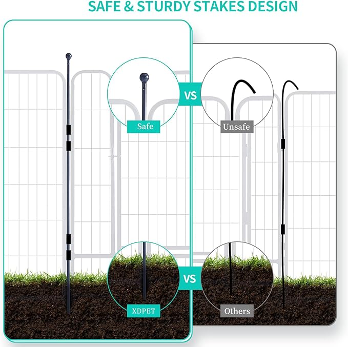 - 【Longer life】The dog fence is made of sturdy metal and is coated with anti-rust paint to enhance the life of the dog fence.【Longer life】The dog fence is made of sturdy metal and is coated with anti-rust paint to enhance the life of the dog fence.