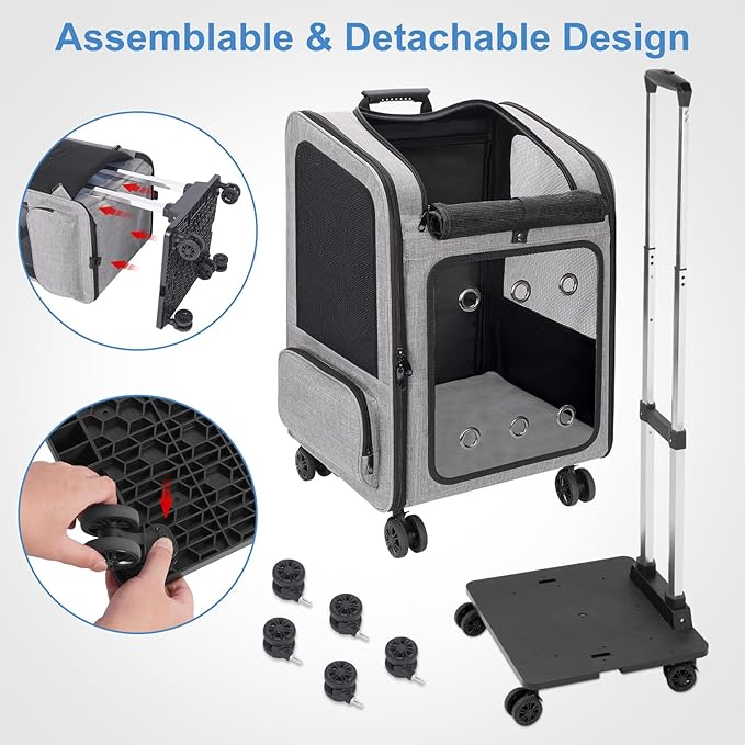Extra Large Pet Carrier Backpack with Wheels Cats Under 30 Lbs, for Dogs Puppies Rabbits Other Animals Under 25 Lbs, Great for Travel/Hiking/Outdoor Use