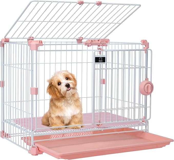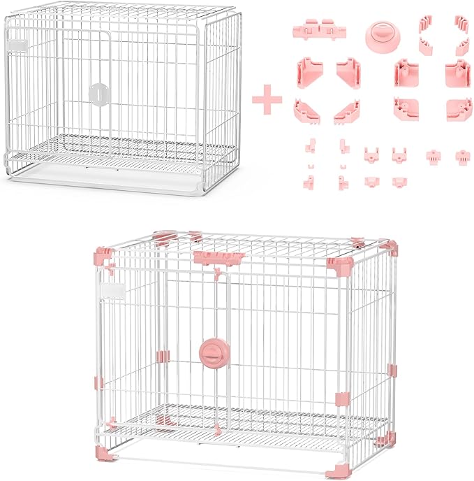 Folding Dog Crate Puppy Kennel Dog Cage Accessories, Pink