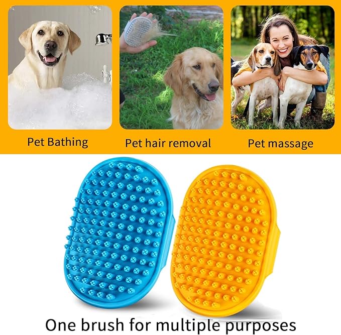 - 【QUALITY PRODUCT】: This dog grooming brush is a quality product made of soft TPR silicone bristles. Ideal for wet and dry use, it is easy to clean and ensures gentle cleaning during dog bathing without harming the skin. It is an excellent choice for dog grooming, massage, and pet skin protection