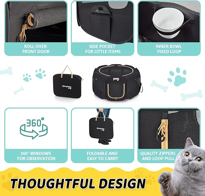 KingCamp Dog Playpen Pet Playpen + Free Travel Bowl Portable Foldable Dog Tent and Puppy Playpen Pet Tent + Free Carrying Case Indoor Outdoor Camping (Large (50x50x24 inches))