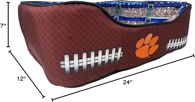 - QUALITY & STYLE - No dog bed should ever sacrifice on style and the NCAA Stadium Dog Bed has a cool football designed side panel with embroidered details and a sporty overall look. It's so comfortable, even the biggest pet fans won't be able to resist taking a nap on this stadium pet bed!