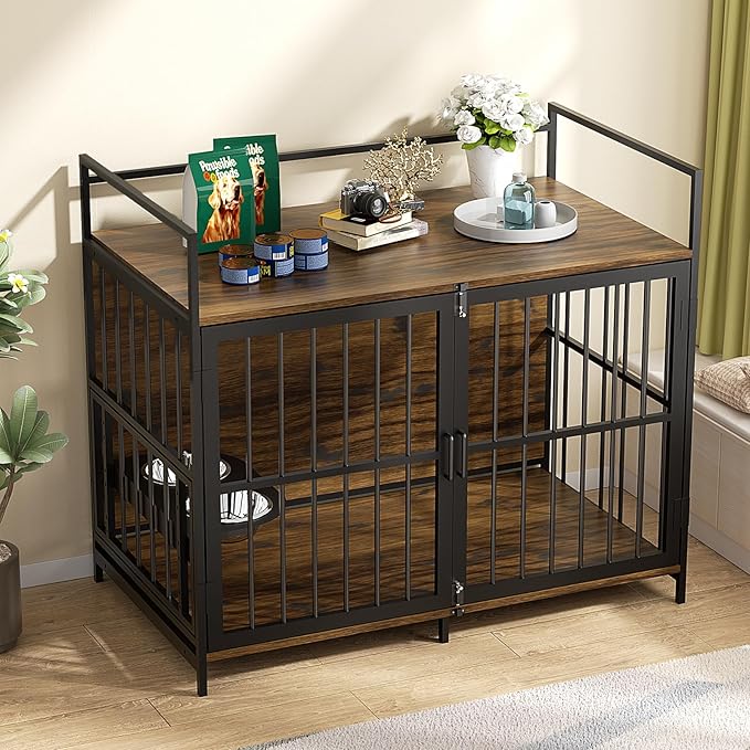 - MULTIFUNCTIONAL DOG CRATE TABLE ??Simple and retro dog kennel furniture, suitable for various decoration styles. It is not only a dog cage for dogs, but also can be used as a side table, coffee table, or bedside table. The wide top can be used to place decorations or dog food, photo albums, small and medium-sized plants, magazines, etc
