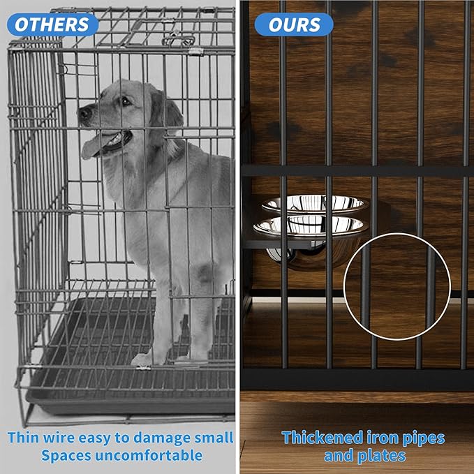 - STURDY HEAVY DUTY DOG CRATE ??The dog cage is made of upgraded steel pipes and high-quality particleboard. The iron pipe is reinforced and the surface is spray-painted, which increases durability and bite resistance. It will not rust or fade after long-term use. The thickened 0.6-inch wooden board has a strong load-bearing capacity and can carry 200 pounds, giving your dog a safe environment
