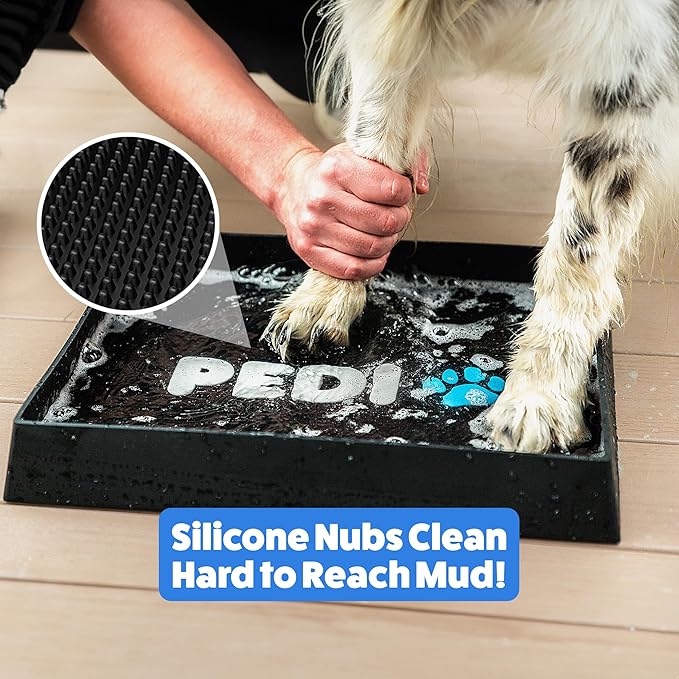 PediPaw Dog Paw Washer/Dog Paw Cleaner, 100% Silicone Dog Mat for Muddy Paws (16"x14"x2.17") (Blue)