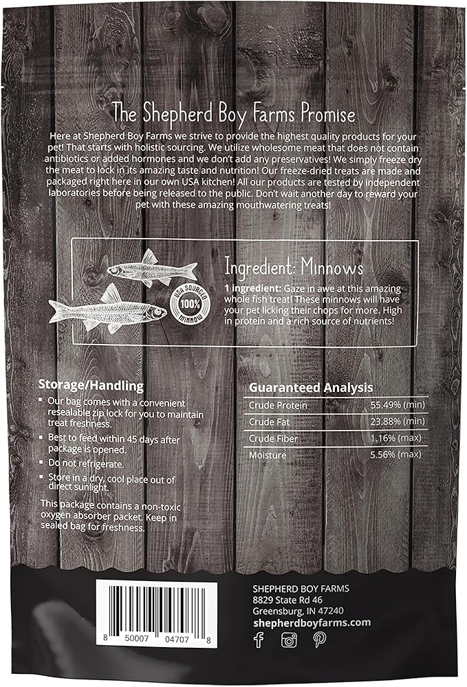 - SINGLE INGREDIENT USA MINNOWS. Gently freeze-dried dog & cat treats to preserve natural nutrients. Healthy dog treats keep your companion happy and vigorous.