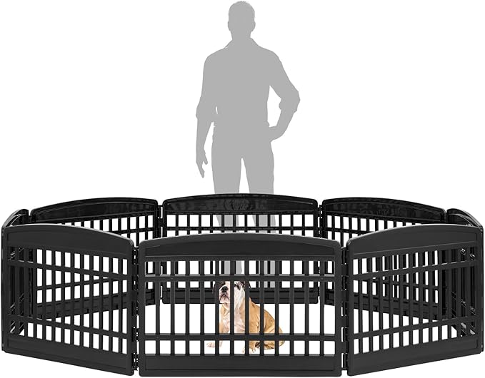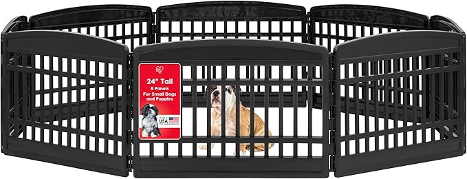 IRIS USA 24" 8-Panel Puppy Playpen, 83.5 x 83.5 x 23.63, Dog Playpen, Dog Play Pen Indoors, Pet Fence, Small Pets, Black