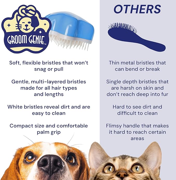 - Each penetrating stroke of the Groom Genie helps to evenly pull natural oils through hair and fur for healthy skin and coat.