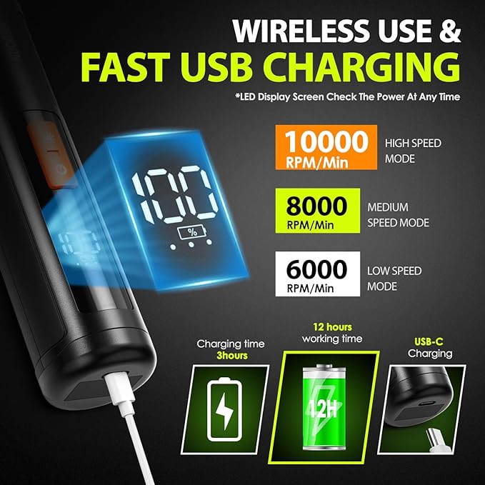 - 【LED Display Screen】: The LED display screen helps you monitor the battery level and the speed setting, which frees you from power anxiety.