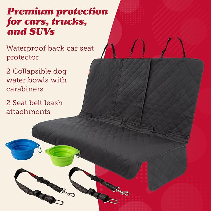 Lusso Gear Dog Car Seat Cover for Back Seat - Non-Slip Black Cover Stays Securely, Fits Your Car, Truck, & SUV, Pack with Leash/Bowl - Waterproof Dog Seat Cover for Back Seat