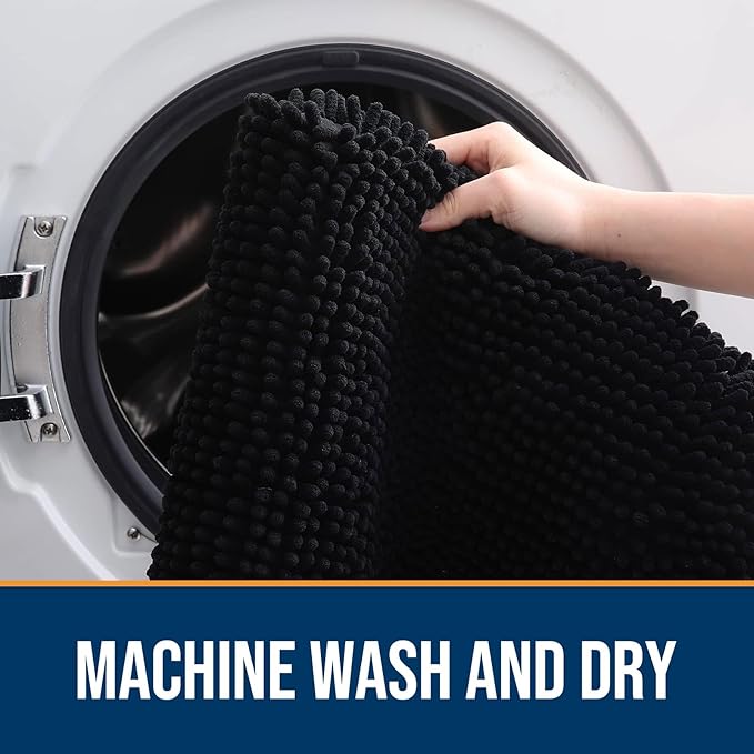 OLANLY Dog Door Mat for Muddy Paws 24x16, Absorbs Moisture and Dirt, Absorbent Non-Slip Washable Mat, Quick Dry Chenille, Mud Mat for Dogs, Entry Indoor Door Mat for Inside Floor, Black
